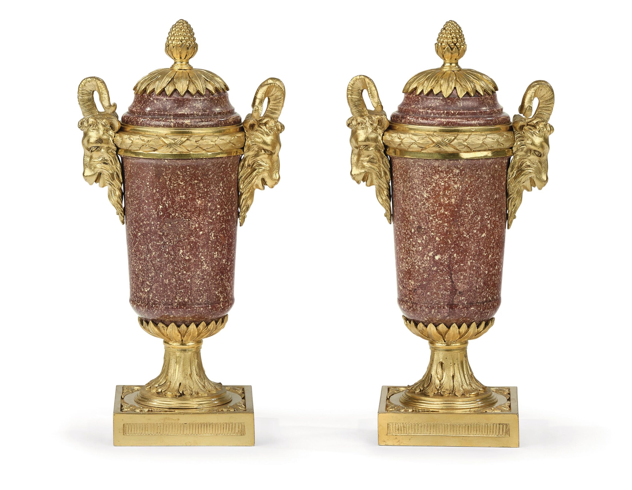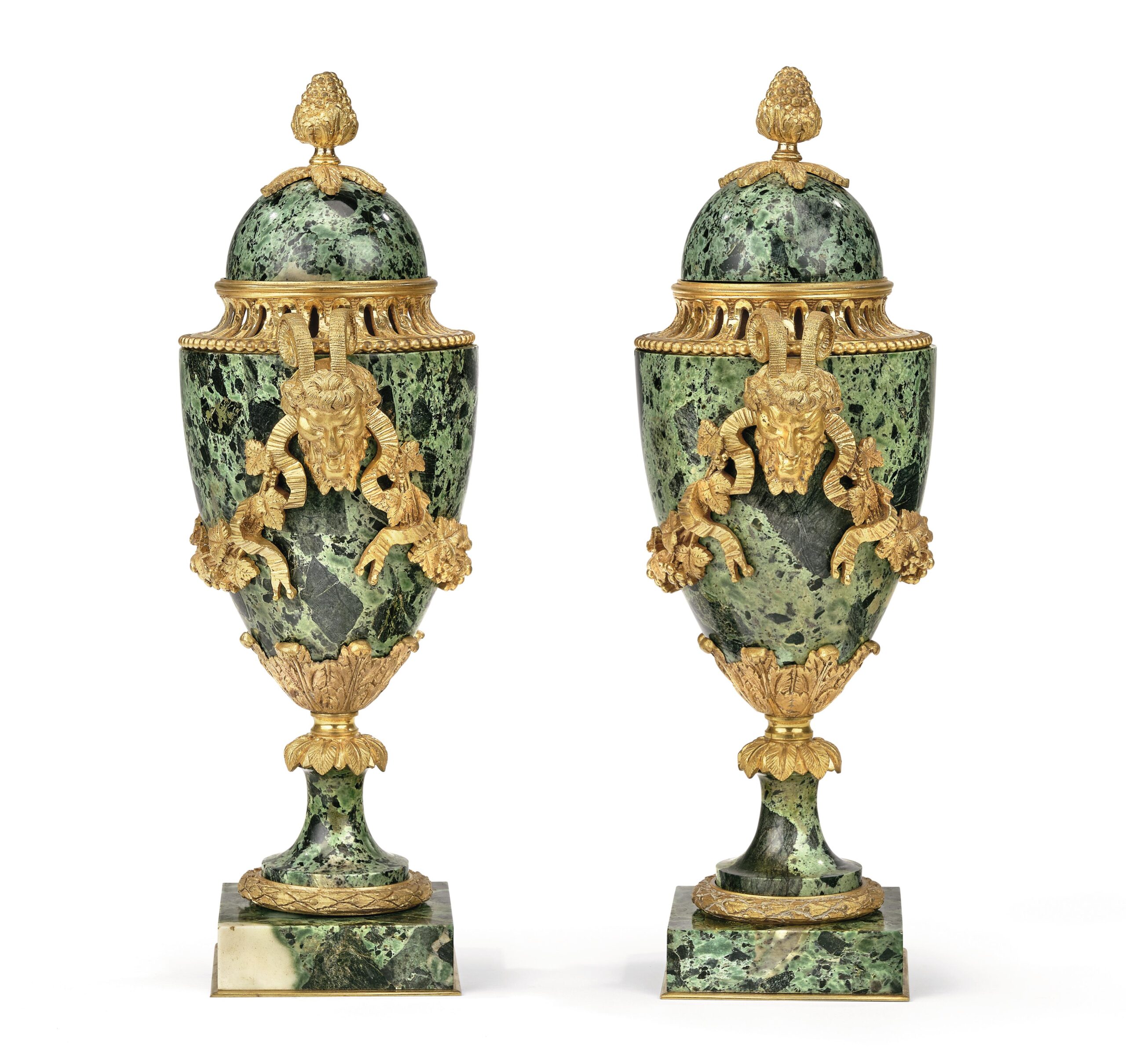 Dekor: Widderköpfe, Pinienzapfen, Blätter
